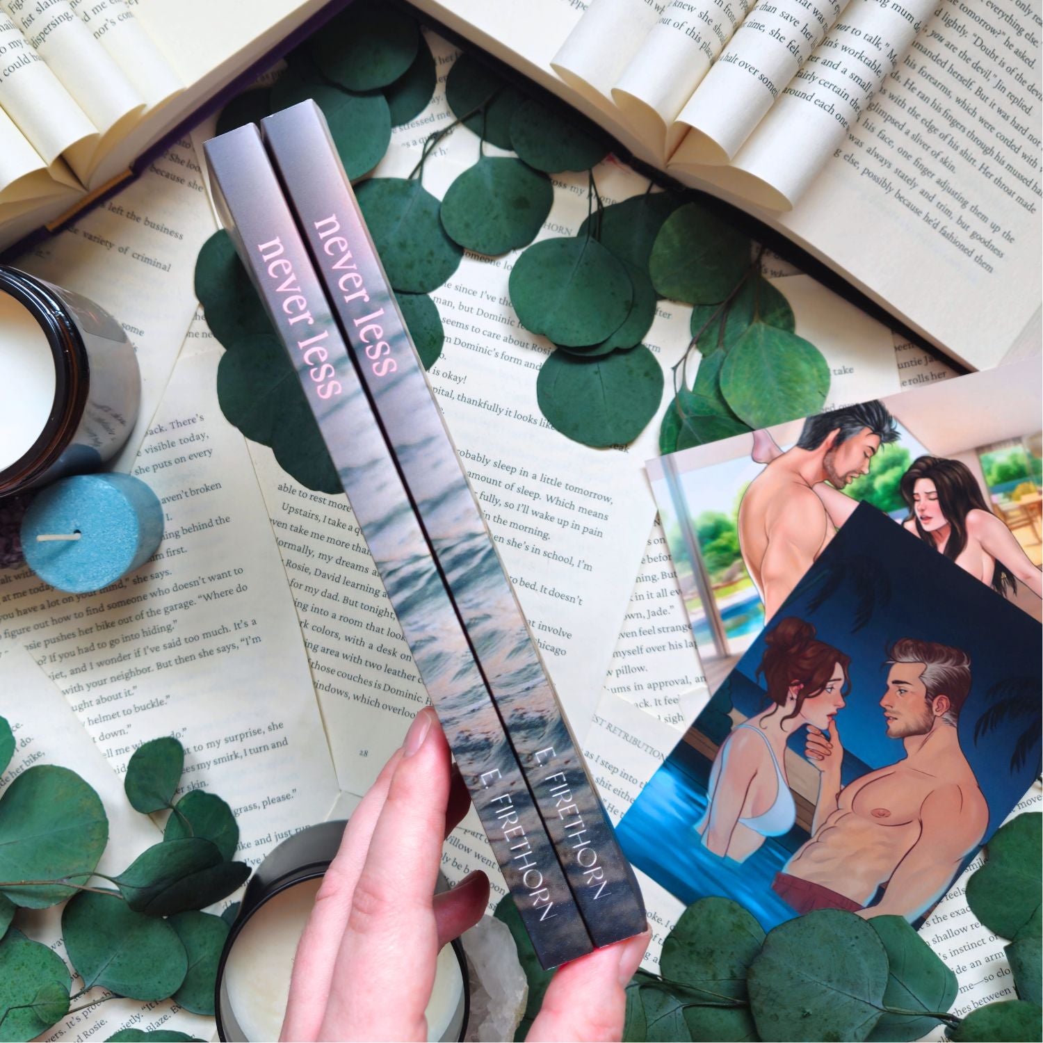 Never Less signed paperback with light pink sprayed edges. Color may vary (see second image).
